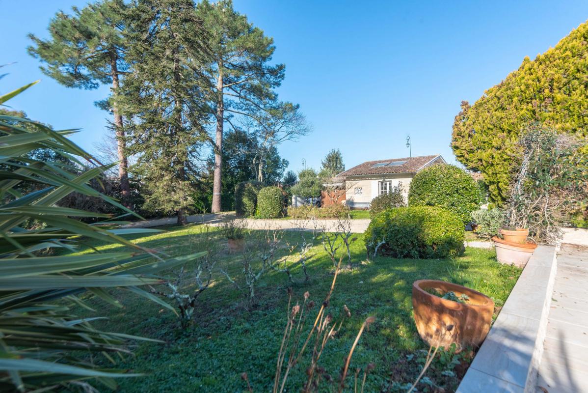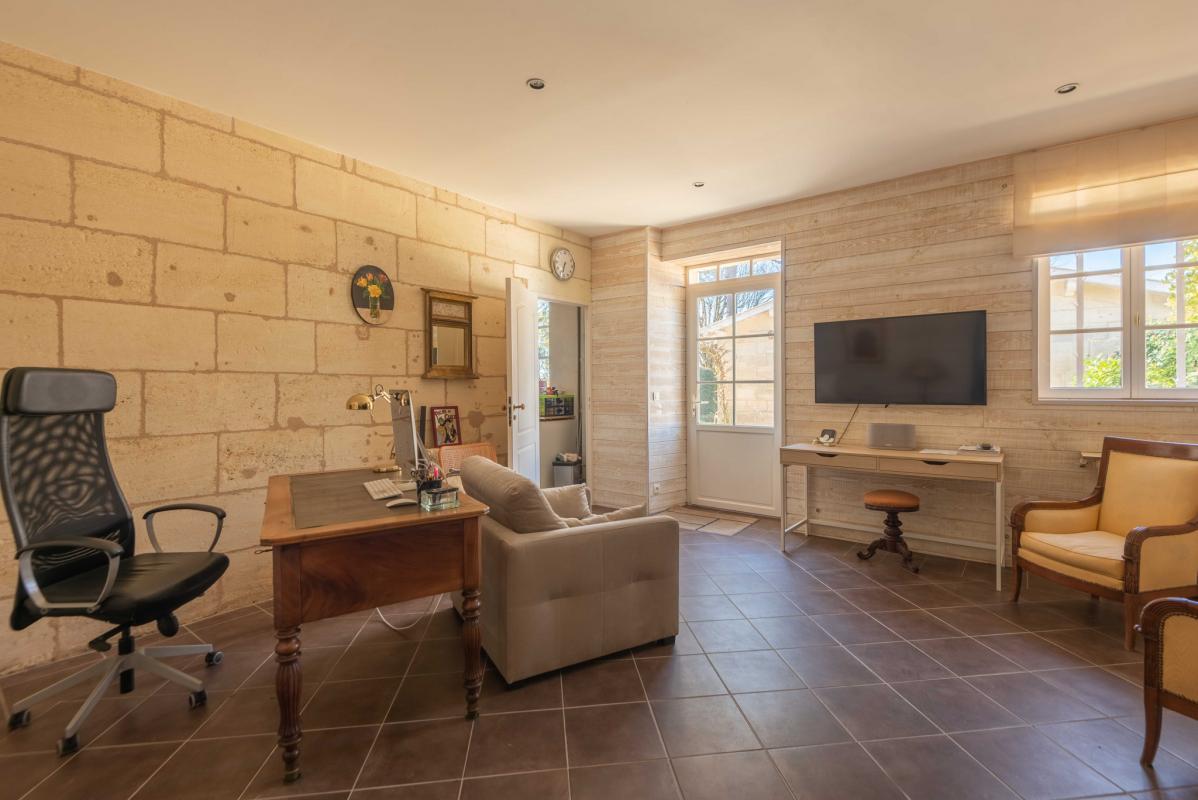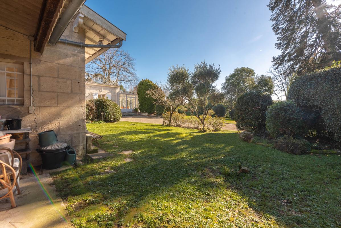 15 MN DU CENTRE DE BORDEAUX – RIVE DROITE – IMMOBILIER RIVA vous propose cette belle demeure en pierre du 19ème comprenant au rez de chaussée : Entrée, cuisine équipée , salle à manger donnant sur une belle véranda (47 m2) au charme d’antan, salon séjour avec cheminée, chaufferie buanderie, bureau (chambre possible) et à l’étage : 3 chambres avec chacune leur salle d’eau wc ainsi qu’ une suite parentale avec dressing, salle de bains wc et sa grande terrasse surplombant un parc arboré de 2386 m2 avec sa piscine 11 x 5m chauffée par pompe à chaleur et sécurisée par volet roulant immergé. Une maison d’amis de 50 m2 ainsi qu’un atelier et garage complètent l’ensemble. Un lieu unique, plein de charme à l’abris de regards. Proche commodités.