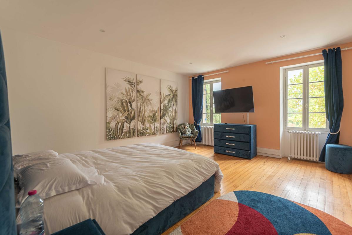 Édifiée sur un terrain arboré de 3 200 m2, elle dispose également d’une piscine sous garantie décennale, de deux garages dont un de 90 m2 et d’une dépendance de 45 m2. Un bien rare alliant charme de l’ancien et prestations modernes, idéal pour une grande famille ou un projet de gîte. Une belle opportunité à saisir rapidement ! Pour tout renseignement et toutes les photos, rdv sur www. immobilier-riva .fr