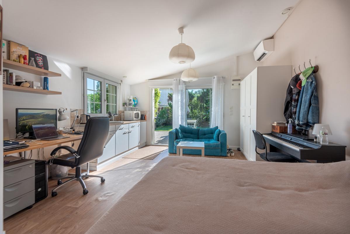 CARIGNAN DE BORDEAUX – IMMOBILIER RIVA vous propose cette maison de charme située dans secteur privilégié. Entrée, salon séjour aux beaux volumes, cuisine us équipée, 3 chambres, bureau, salle d’eau. Un studio attenant de 26 m2, ainsi qu’une piscine 10 x 4m au sel chauffée par PAC complètent l’ensemble sur un jardin paysager de 1628 m2. Coup de coeur aux portes de Bordeaux.
