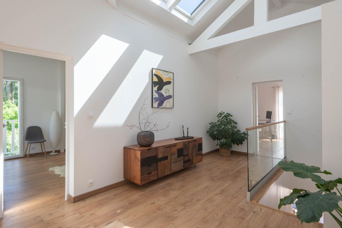 FARGUES SAINT HILAIRE – IMMOBILIER RIVA vous propose cette belle maison entièrement rénovée aux prestations actuelles. Vous serez sous le charme dès l’entrée, spacieuse et lumineuse, beau séjour avec cheminée et la cuisine équipée donnant sur une terrasse, accueilleront vos moments de convivialité, une chambre d’amis avec sa salle d’eau/wc complète le rez de chaussée. A l’étage un vaste palier dessert une suite parentale avec sa salle d’eau, wc, dressing, 2 chambres avec placards, salle de bains et un grand salon tv (40 m2). Piscine 11.50x3m chauffée et sécurisée, garage attenant sur parc arboré de 1830 m2 environ. Dans son écrin de verdure. RARE dans Village dynamique .