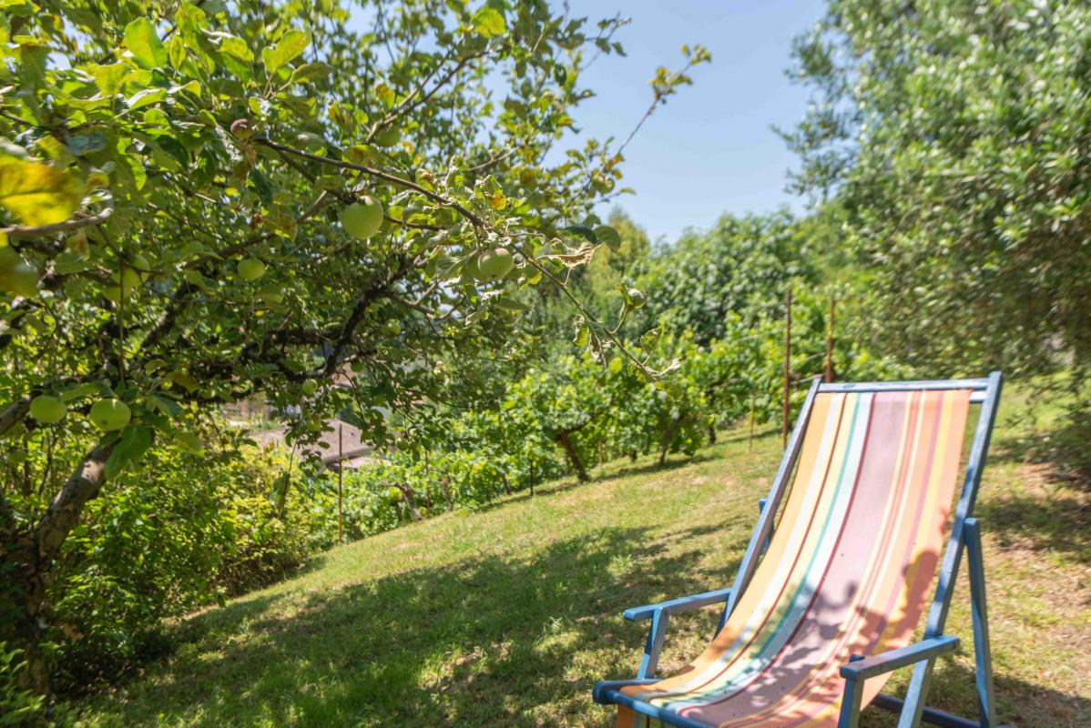 Le jardin paysager, véritable havre de paix, abrite de nombreux arbres fruitiers, des vignes, une petite forêt, ainsi que d’anciens espaces troglodytiques nichés dans la roche, aujourd’hui aménageables en atelier ou en zone de stockage. Calme assurée. Parcelle de 2561 m2.