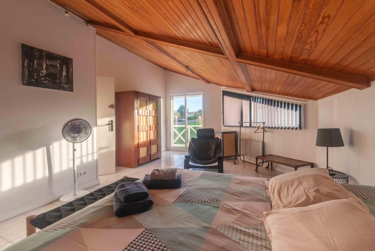 CARIGNAN DE BORDEAUX – IMMOBILIER RIVA vous propose cette maison familiale (4 CHAMBRES) de 150 m2 + 66 m2 de garage (pour 2 voitures) au coeur d’une parcelle de 2500 m2 environ et d’un environnement très boisé, au calme et dans un cadre SECURISÉ pour les enfants, à l’abri de toute circulation. Au RDC : séjour, cuisine, 3 chambres, salle de bains avec douche, wc et au 1er étage : palier avec espace bureau, grande chambre avec sa salle d’eau et wc. Piscine 10 x 4 m au sel chauffée avec volet roulant. Magnifique Gazébo. Insert au bois.