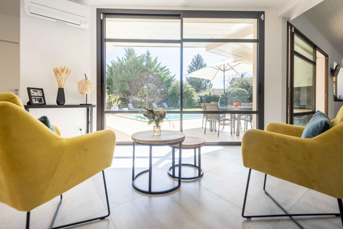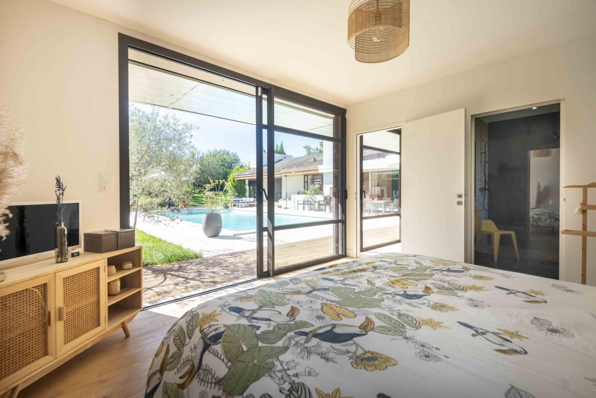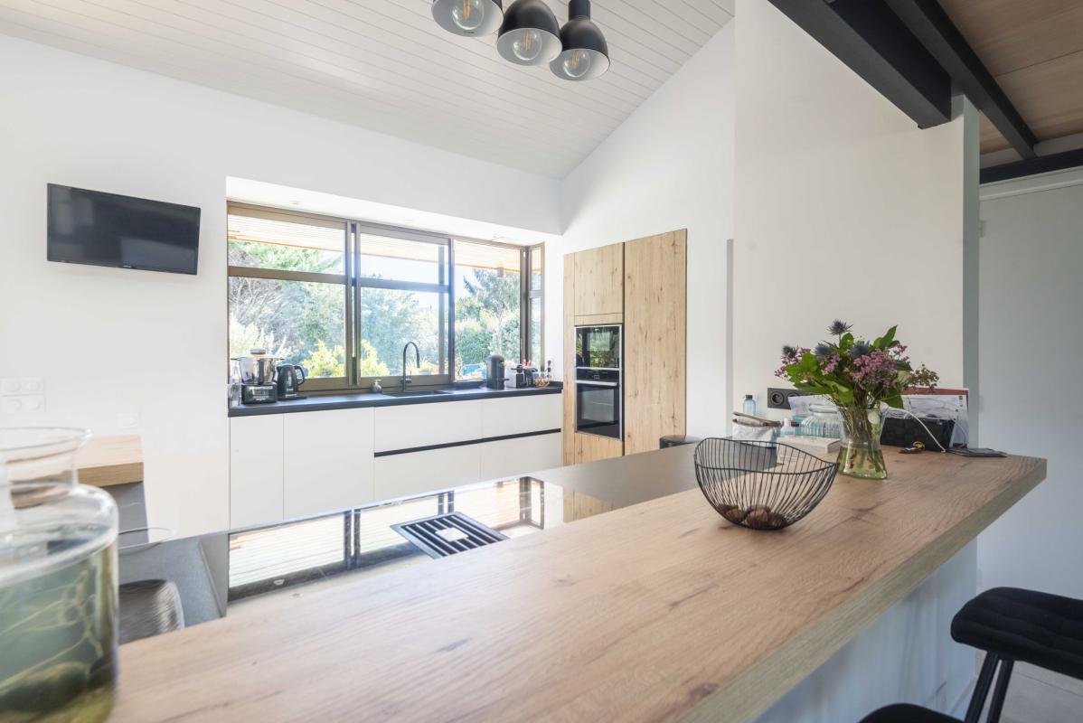 HAUT LATRESNE – IMMOBILIER RIVA vous propose cette belle maison d’architecte rénovée en 2021, située dans un secteur résidentiel. Ce bien d’exception vous séduira par ses beaux volumes de réception : plus de 100 m2, sa belle cuisine us avec ilot ou la lumière traversante inonde l’espace, 3 espaces nuits distincts avec au rez-de-chaussée : 2 chambres, dressing et salle de bains, wc, dans une autre aile de la maison une superbe suite parentale avec chambre, gd dressing, salle de bains, wc et à l’étage un espace bureau sur une passerelle qui vous emmène vers une chambre avec sa salle d’eau privative. Une piscine au sel 10 x 5m chauffée par PAC, un carport et un garage atelier en sous-sol complètent l’ensemble sur jardin clos et arboré de 2500 m2. Proche des écoles, collège et commerces. DOSSIER SUR DEMANDE.