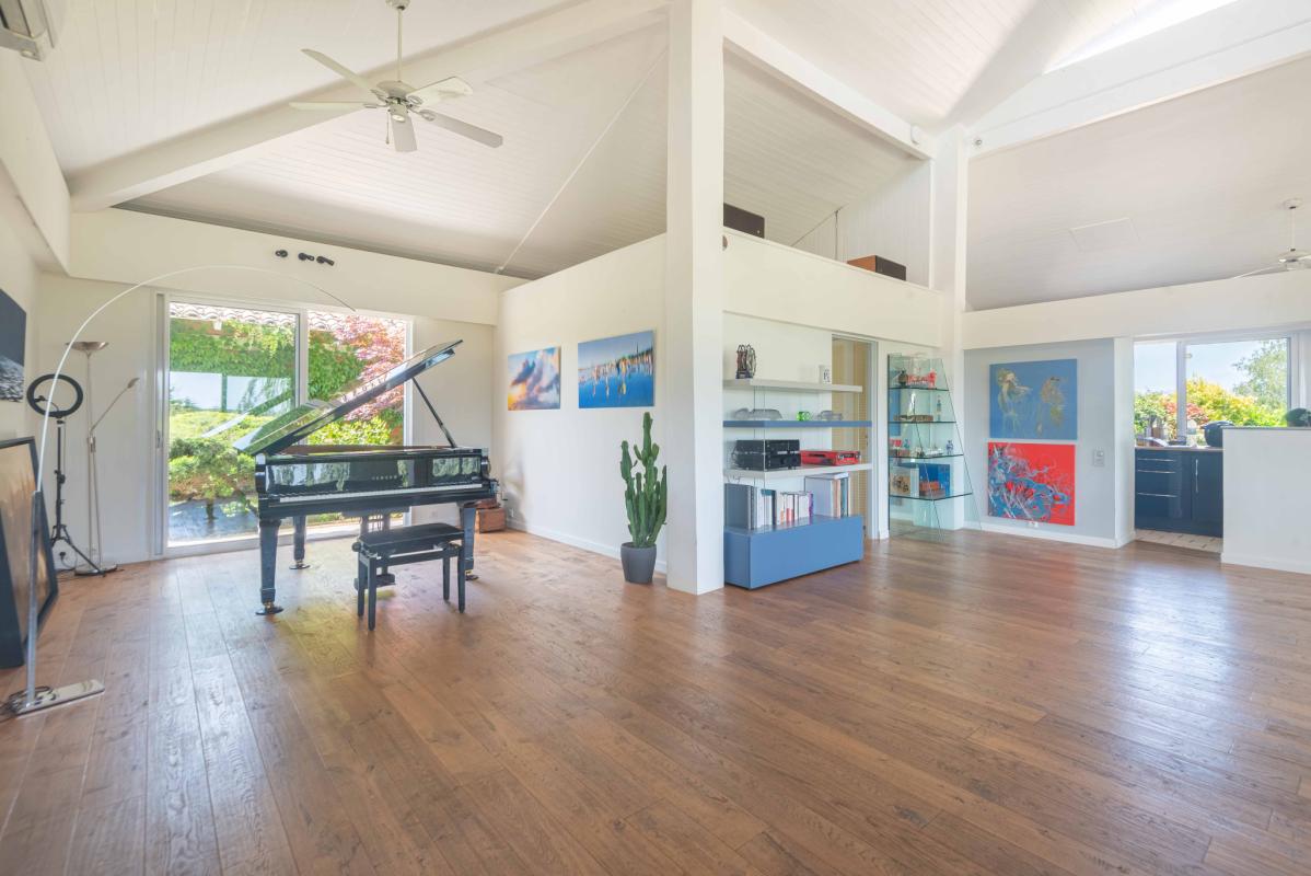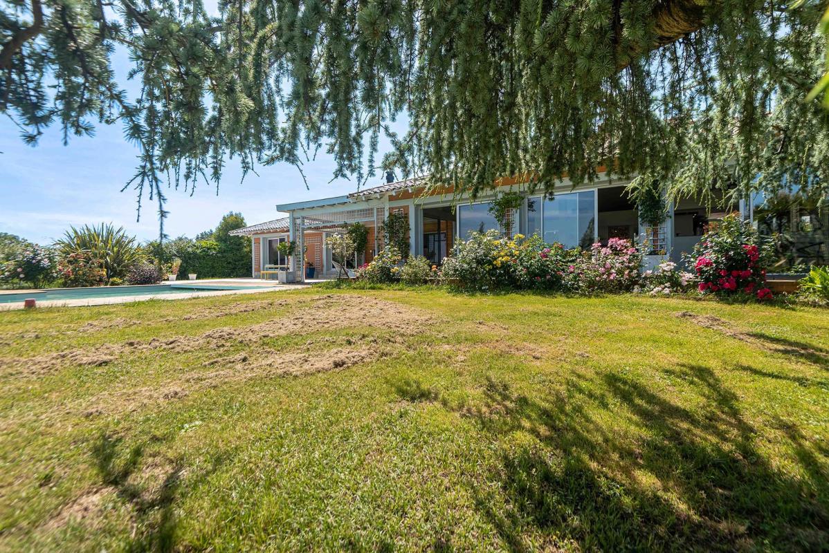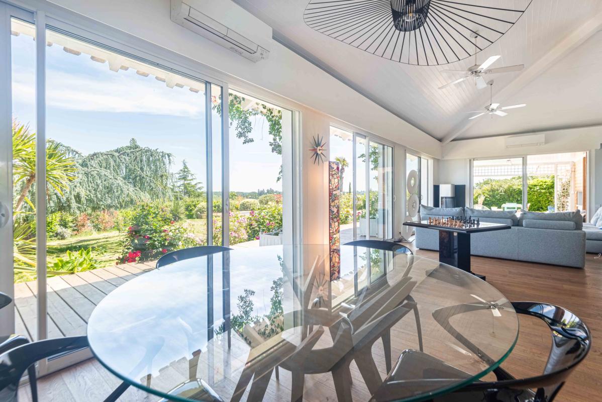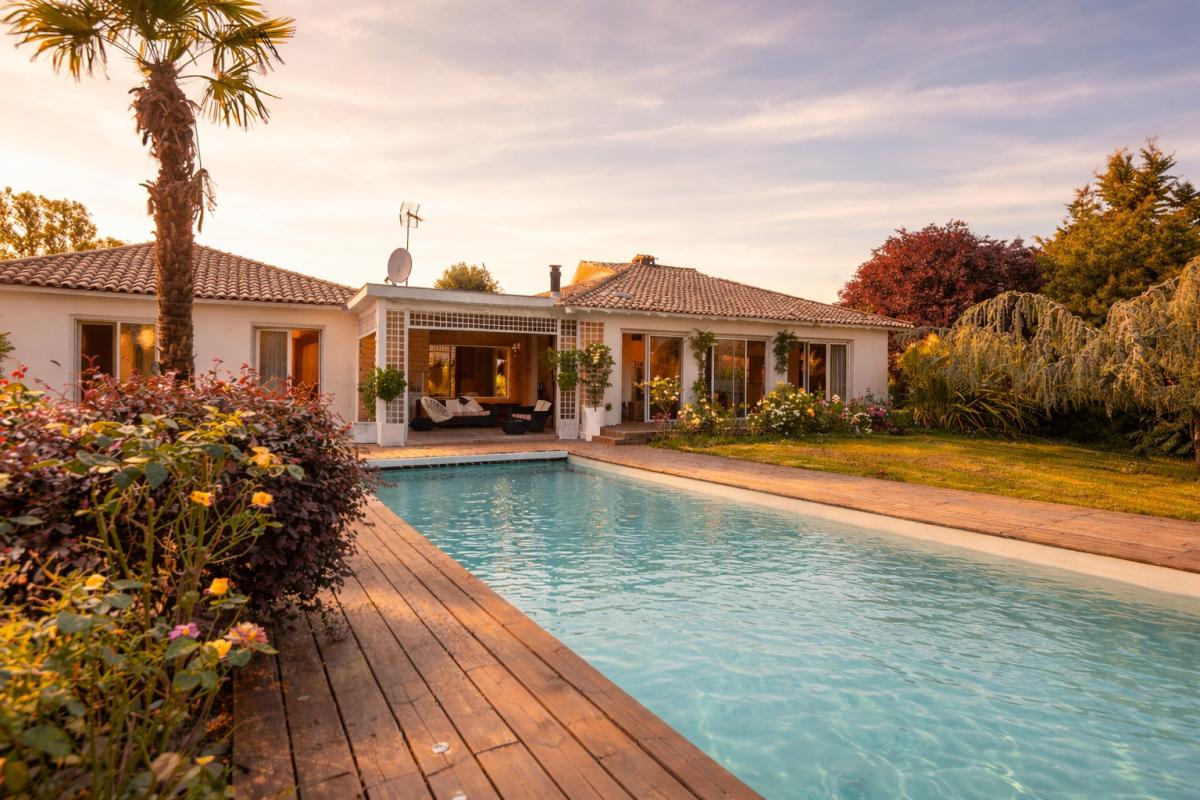 PROCHE LATRESNE – IMMOBILIER RIVA vous propose cette belle villa d’exception baignée de lumière aux beaux volumes salon séjour (100 m2), cuisine équipée us, 5 chambres dont une suite parentale avec dressing et salle d’eau, 1 salle de bains, 2 salles d’eau. Il y a également une dépendance avec salle de sport, buanderie et garage, une piscine 12 x 4 m au sel, chauffée par pac et sécurisée par un volet roulant ainsi qu’une belle terrasse avec pergola ou il fait bon se poser afin d’admirer le beau jardin paysager de 2776 m2 avec vue dégagée sur les côteaux. Bien rare .