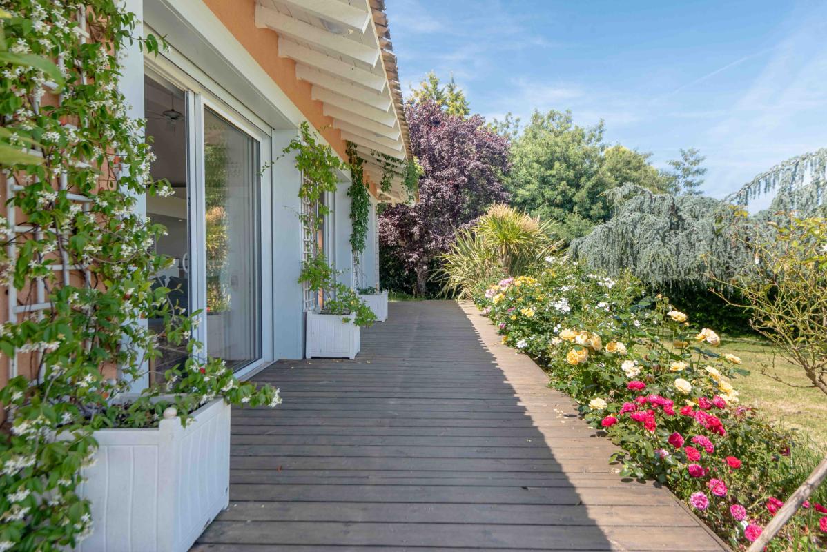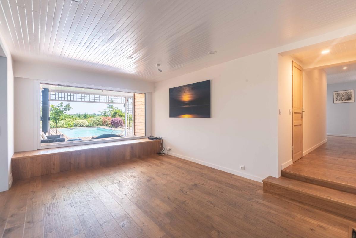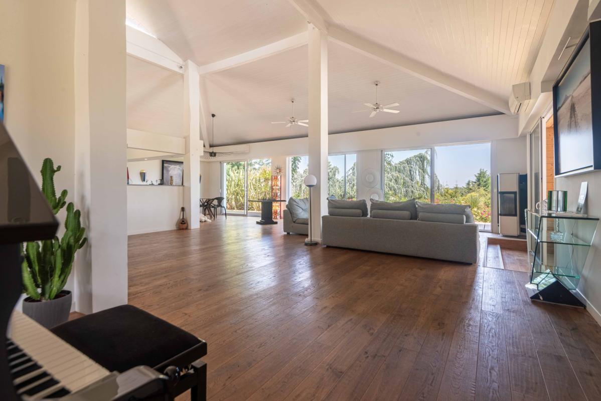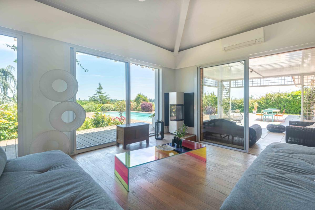PROCHE LATRESNE – IMMOBILIER RIVA vous propose cette belle villa d’exception baignée de lumière aux beaux volumes salon séjour (100 m2), cuisine équipée us, 5 chambres dont une suite parentale avec dressing et salle d’eau, 1 salle de bains, 2 salles d’eau. Il y a également une dépendance avec salle de sport, buanderie et garage, une piscine 12 x 4 m au sel, chauffée par pac et sécurisée par un volet roulant ainsi qu’une belle terrasse avec pergola ou il fait bon se poser afin d’admirer le beau jardin paysager de 2776 m2 avec vue dégagée sur les côteaux. Bien rare .