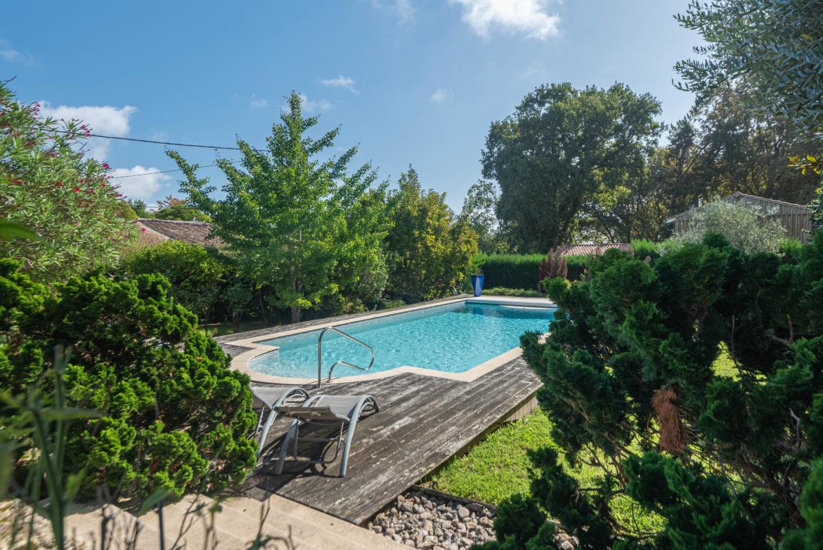 15MN DE LATRESNE – IMMOBILIER RIVA vous propose cette MAISON ANCIENNE EN PIERRE qui attend qu’on lui redonne toute sa splendeur. Une entrée (8m2) vous ouvre ses portes sur un couloir (11.5m2) desservant cuisine et arrière-cuisine (18m2, 7.5m2), salle à manger (30m2), salon (34m2), bureau (9m2), chambres (20m2, 15m2), buanderie, salle de bains (7m2), petite salle d’eau, toilettes. Un vestibule (6.70m2) permet d’accéder au salon d’une part et au garage (33m2) d’autre part. À l’étage, vous trouverez une troisième chambre et un second bureau/petite chambre. Un vieux cellier (18m2) avec grenier, garage et un abri en pierre complètent ce bien. Une belle piscine au sel chauffée, de 10m x 5m, s’intègre avec charme sur ce terrain arboré et fleuri de 1820 m2. Calme assuré.