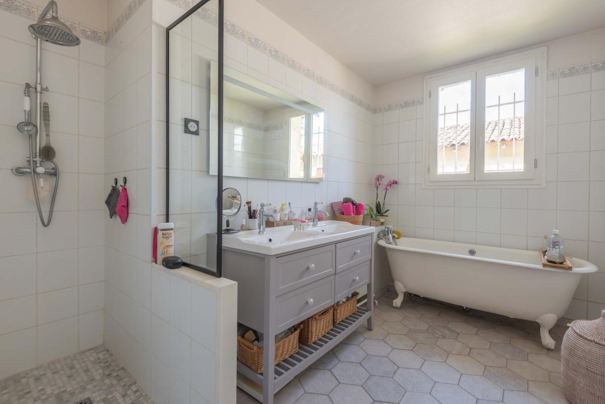 – Au rez-de-chaussée : une belle entrée, un grand salon lumineux avec cheminée, une cuisine séparée avec arrière-cuisine, un bureau, une chambre avec une salle de bain/douche, wc,