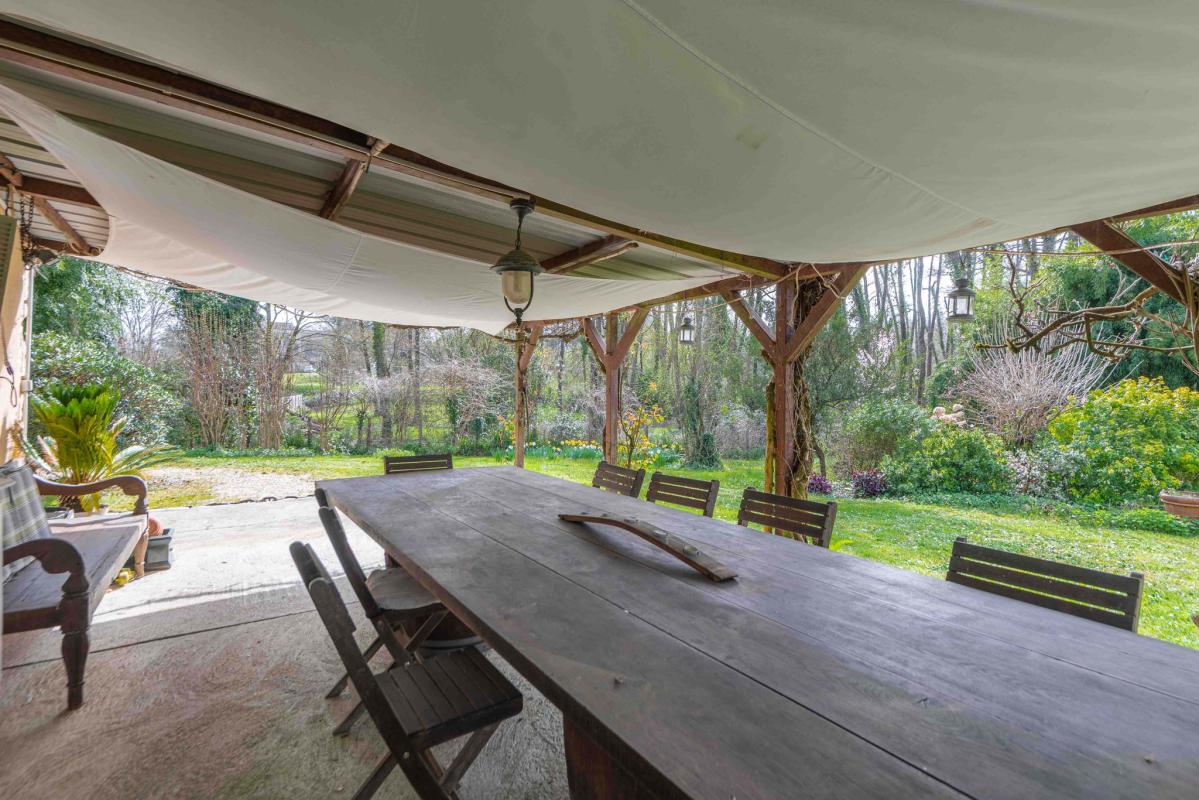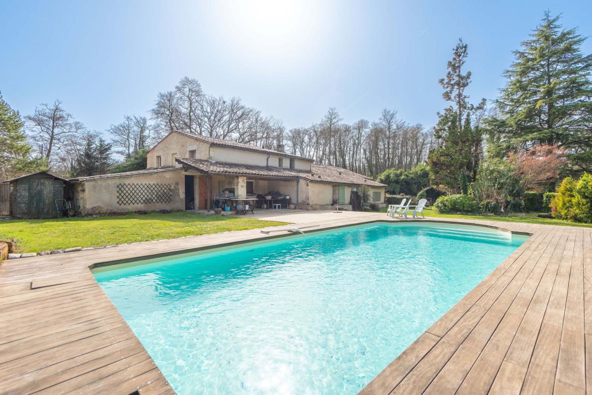 À l’extérieur, vous jouierez d’un jardin arboré de plus de 3 500 m2, d’une piscine de 11 x 5 m, ainsi que de plusieurs espaces extérieurs.