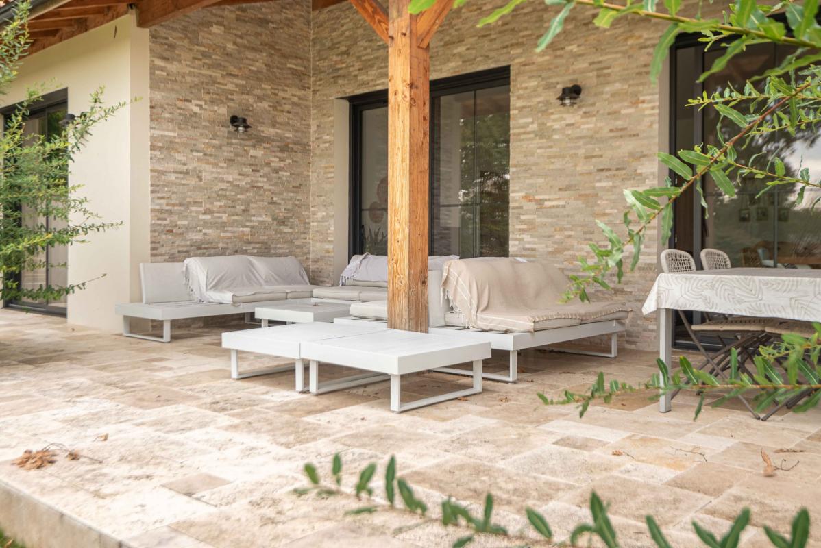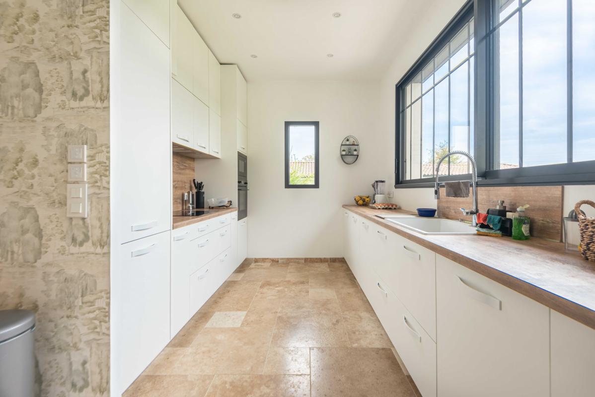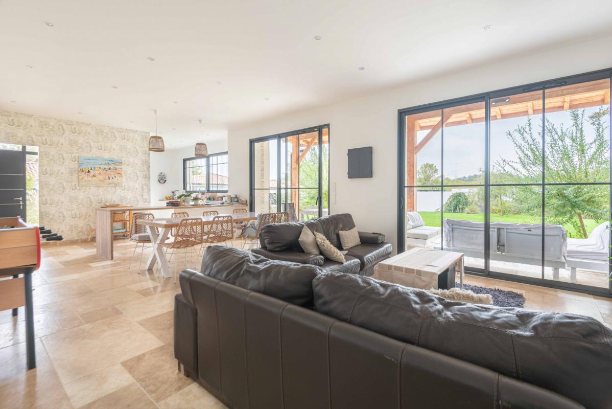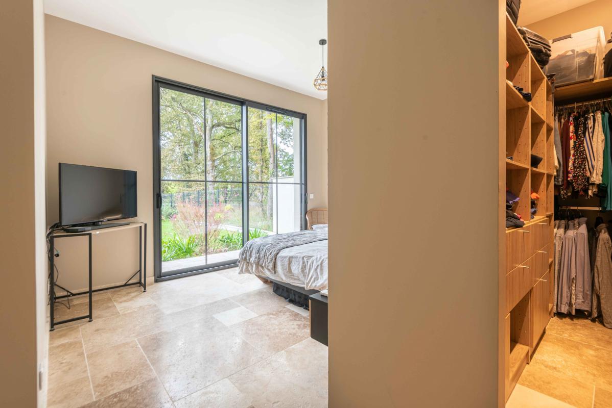 SECTEUR LATRESNE – IMMOBILIER RIVA vous présente cette maison récente (2020) de 180 m2, équipée avec goût et des prestations de qualité. Dans un environnement calme et arboré, profitez de la vue dégagée grâce à la position dominante de la maison. Elle possède un grand salon/séjour lumineux avec une belle hauteur sous plafond (3 m) ouvert sur une cuisine équipée, 4 chambres dont 2 avec suite (dressing et salle d’eau), 1 salle de bains, 3 WC et une grande buanderie/cellier. Un grand garage d’environ 40 m2 pour 2 voitures. La parcelle de 1800 m2 est exposée plein SUD et est piscinable. A 20 min de la gare Saint-Jean et un peu moins de 30 min de l’aéroport de Mérignac, elle vous offrira le calme de la campagne tout en gardant la proximité de la ville. Chauffage au sol avec pompe à chaleur + clims réversibles (salon et chambre parentale).