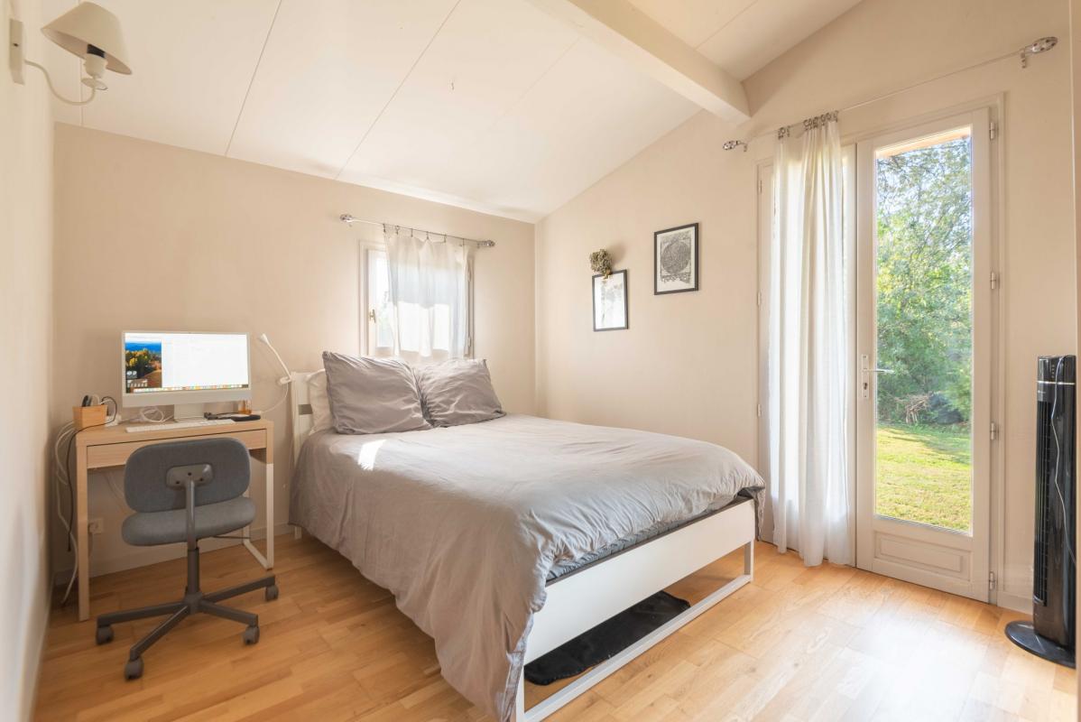 Proche du centre de CARIGNAN DE BORDEAUX, IMMOBILIER RIVA vous présente cette maison au calme de 169 m2. La maison dispose d’un beau séjour lumineux, haut de plafond, exposé plein SUD de 60 m2 donnant sur une piscine de 10 x 5m. Disposant de 5 chambres dont une petite modulable en bureau, elle conviendra parfaitement à une grande famille. La parcelle de 1400 m2, verdoyante et sans vis-à-vis, est sans doute l’atout principal de cette maison. La grande pièce de 17 m2 avec ses grandes baies vitrées pourra servir de salle de gym, atelier ou bureau, par exemple. 2 wc, 1 salle de bain et 1 salle d’eau.