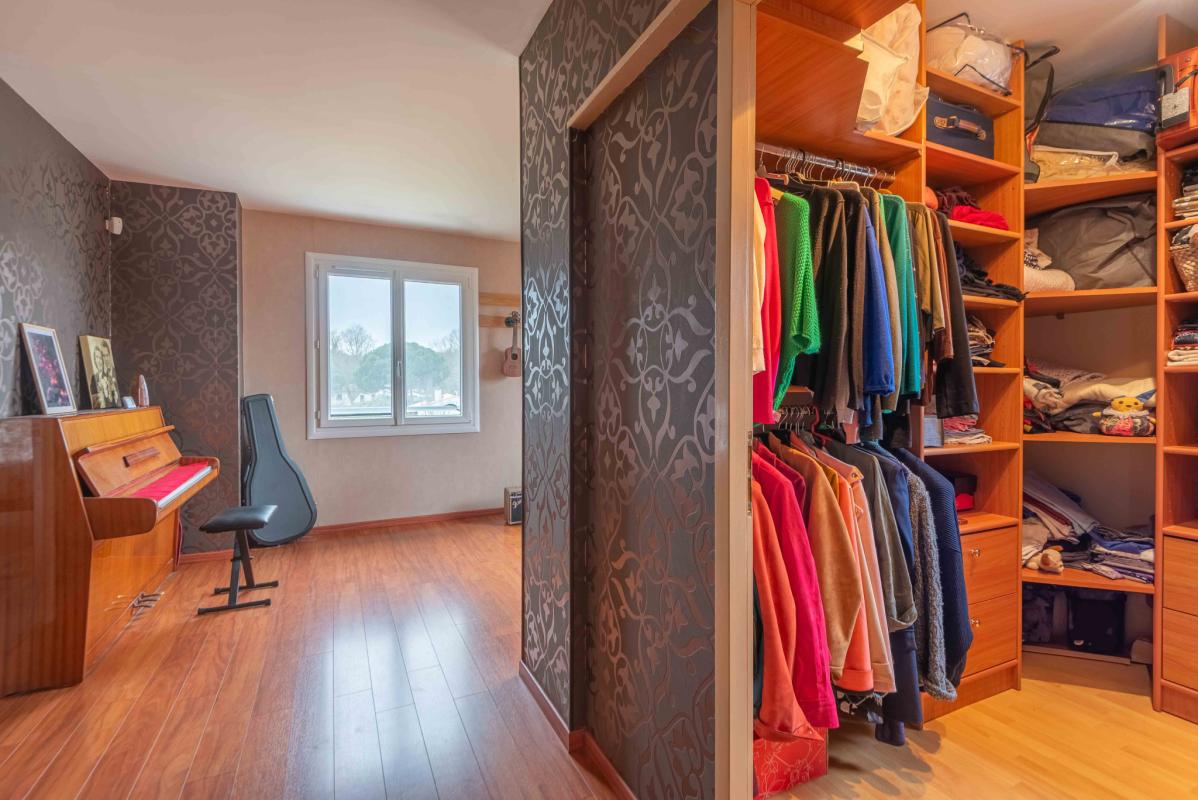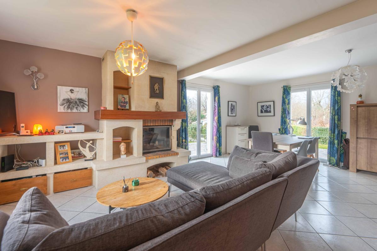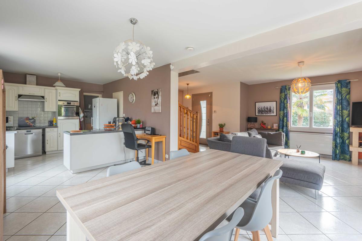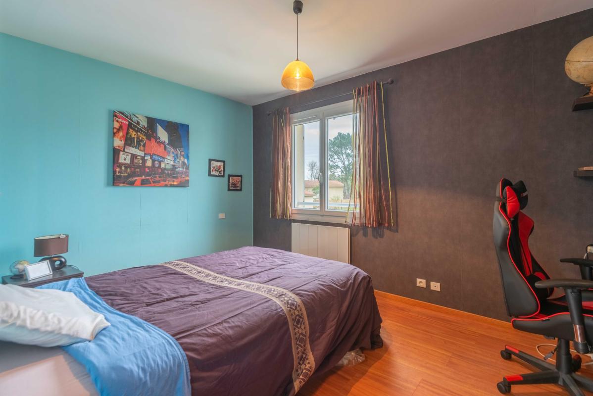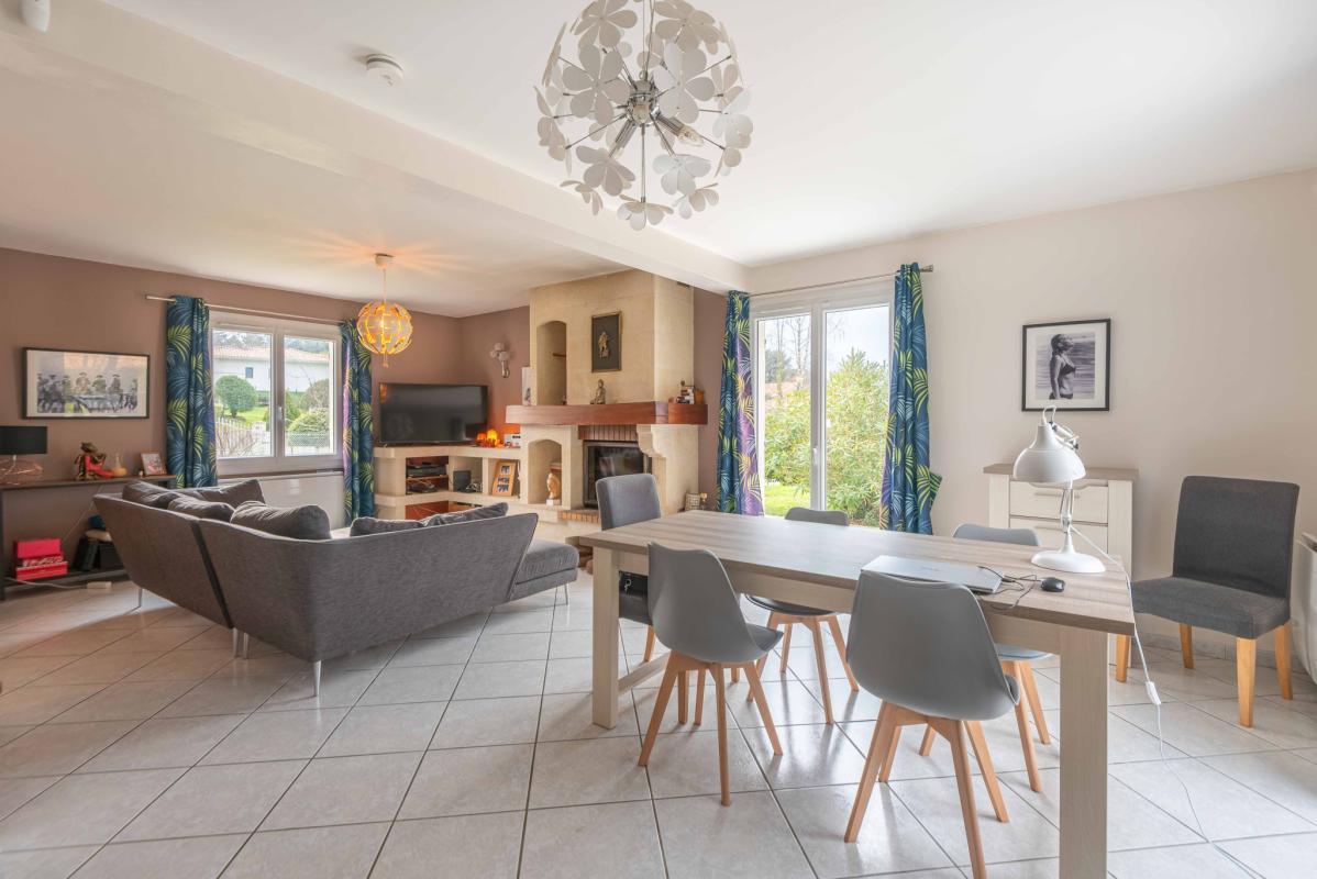 POMPIGNAC – IMMOBILIER RIVA vous propose cette maison contemporaine de 147 m2 sur 2 niveaux comportant au rez-de-chaussée : entrée, séjour et cuisine (53m2), cellier et au 1er étage: 3 chambres dont une chambre avec sa salle d’eau, salle de bains, dressing, grand espace pour bureau, musique, jeux, lecture. (possibilité de cloisonner pour créer une 4EME CHAMBRE). Vue dégagée depuis le salon. Garage de 15m2. Insert cheminée à bois. Piscinable. Calme.