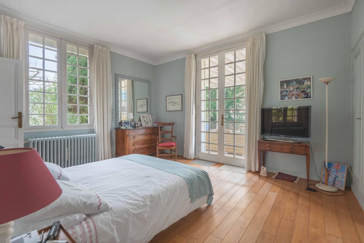 Le rez-de-jardin offre des surfaces complémentaires appréciables avec un bureau de 23 m2, un studio indépendant, des ateliers polyvalents et un garage double de 51 m2. Piscine chauffée.