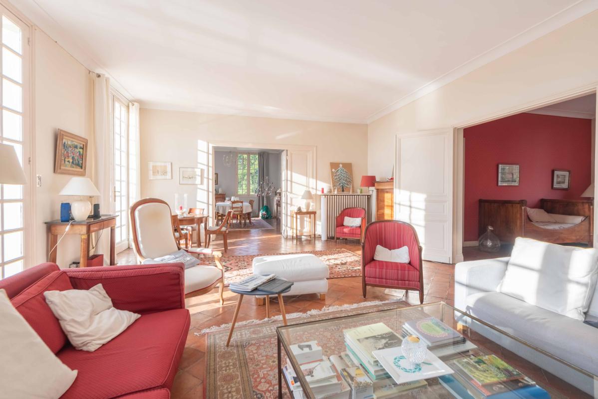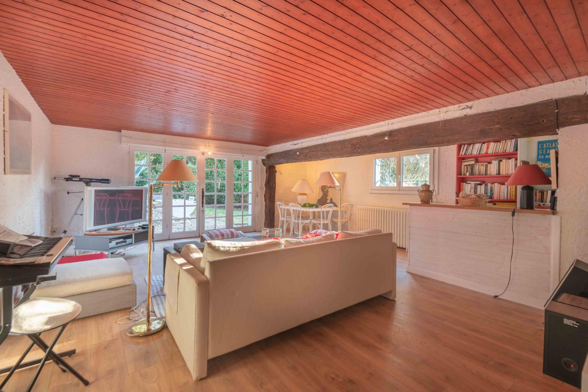 Le rez-de-jardin offre des surfaces complémentaires appréciables avec un bureau de 23 m2, un studio indépendant, des ateliers polyvalents et un garage double de 51 m2. Piscine chauffée.