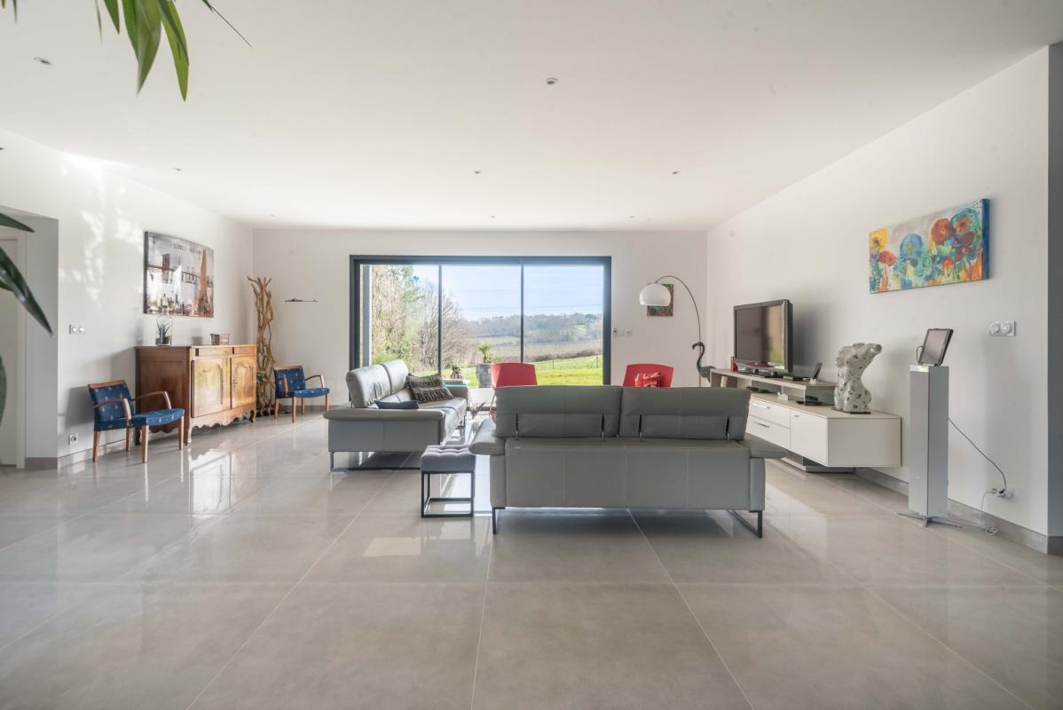 A QQ KM DE LATRESNE – SUR LES HAUTEURS D’UN COTEAU – RIVA IMMOBILIER vous propose cette belle maison moderne construite en 2017 de 170m2 (RT 2012) de plain-pied comportant un GARAGE carrelé de 43m2. Vous serez séduit par son grand espace de vie lumineux (séjour, salle à manger et cuisine de 88 m2) donnant sur terrasse et sa pergola bioclimatique. 3 chambres dont une suite parentale avec sa salle d’eau, 2ème salle d’eau, buanderie, cellier, 2 wc. VUE TRES DEGAGEE. Vide-sanitaire. Petit garage ou Cave sous la maison. Chauffage au sol. Parcelle de 1800 m2. Piscinable. Calme assuré.